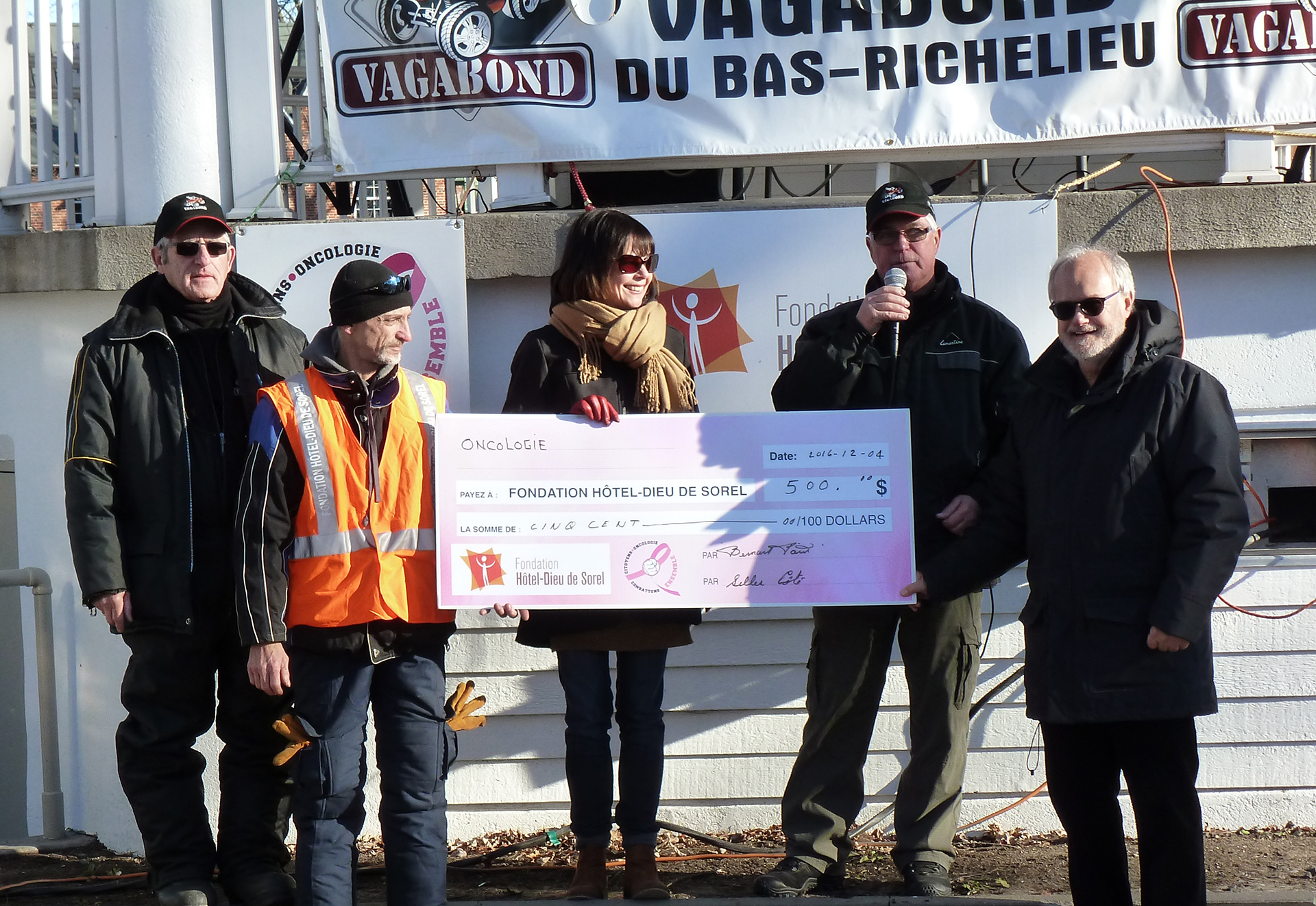 LA FONDATION HÔTEL-DIEU DE SOREL souhaite remercier l’initiative philanthropique de monsieur Yves St-Pierre en collaboration avec le Club VTT Vagabonds du Bas-Richelieu, qui ont mis sur pied le défilé annuel de VTT dans le but d’amasser des dons qui seront attribués au département d’oncologie de l’Hôtel-Dieu de Sorel.