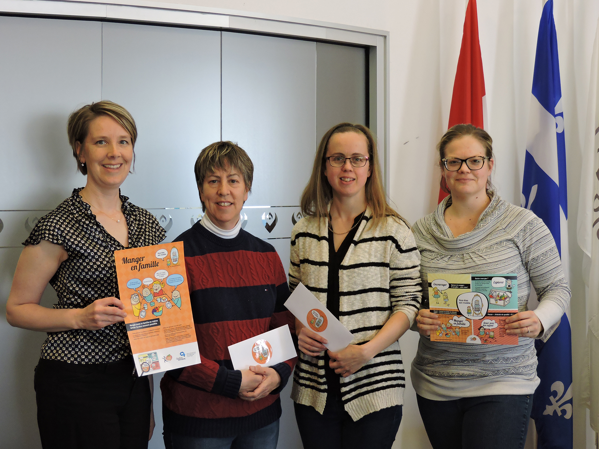 Sur la photo, de gauche à droite : Marie Ouellet, du comité organisateur – Portail PDS en santé, Lucie St-Germain, du CPE des Marguerites, Marie-Ève Gagnon, de l’installation Les Moussaillons et Véronique Massé, du comité organisateur – Portail PDS en santé.