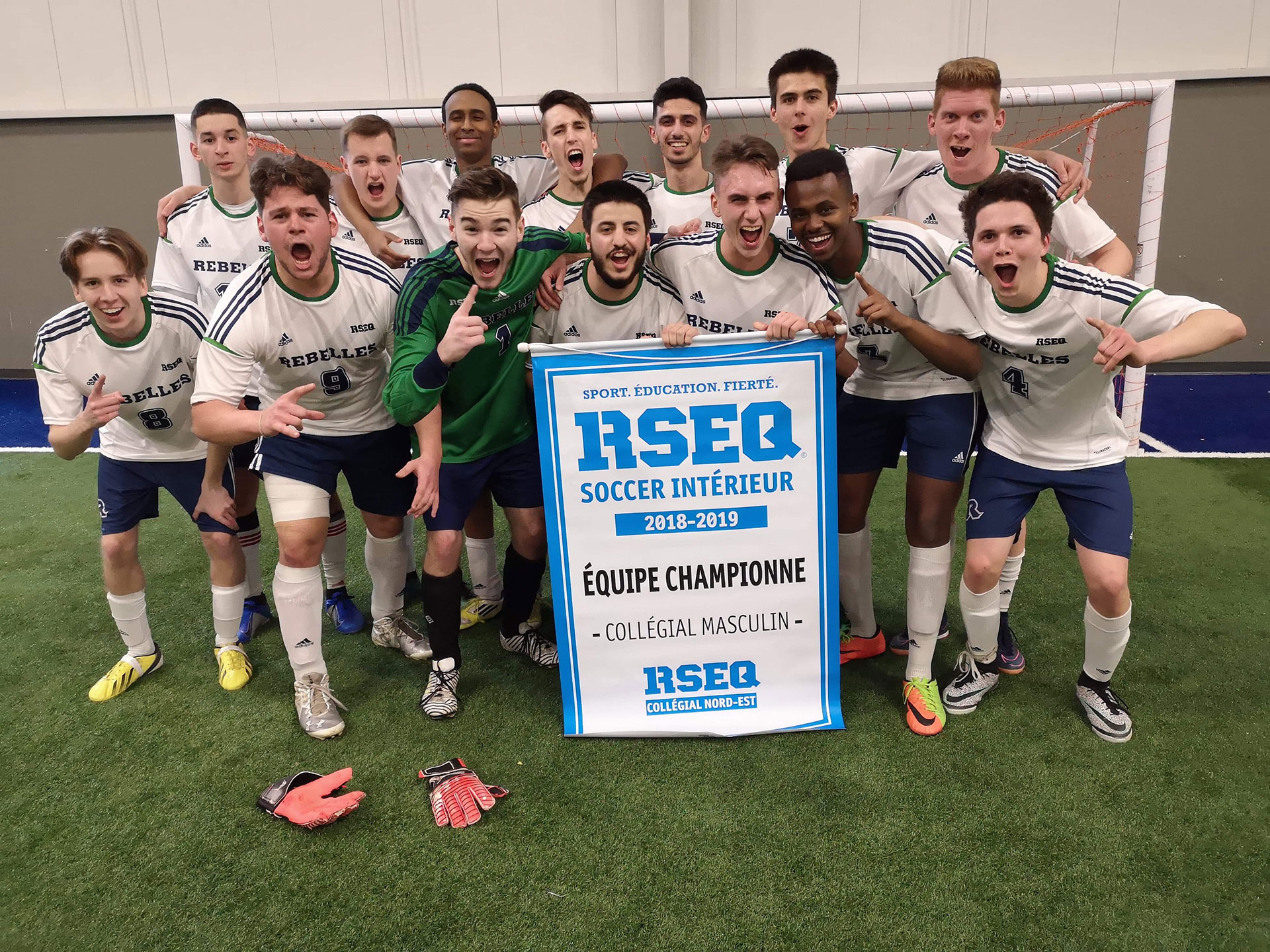 De leur côté, nos garçons ont remporté leur quart de finale en blanchissant les Filons du Cégep de Thetford Mines 2 à 0; en demi-finale, l’attaque aura eu le meilleur sur la défensive des Trappeurs du Cégep de Baie-Comeau, défaisant ces derniers 5 à 1. La finale les opposait aux Voltigeurs du Cégep de Drummondville et se termina par la marque serrée de 2 à 1 en faveur des Rebelles, qui conservent leur titre de champions! Félicitation à tout le personnel d’entraîneurs et aux joueurs pour cette belle saison, profitez du moment tout en vous concentrant sur vos études et à l’an prochain!
